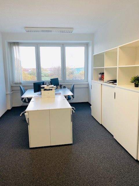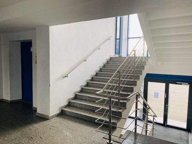 Die Büroflächen befinden sich rechts und links vom Aufgang und können getrennt oder komplett angeboten werden und bieten durch große Fenster viel Tageslicht, was für eine angenehme Arbeitsatmosphäre sorgt. Ein Aufzug erleichtert den Zugang zu den oberen Stockwerken und trägt zum Komfort bei. Das Gebäude wird durch einen Hausmeister betreut, der jederzeit gern behilflich ist.
