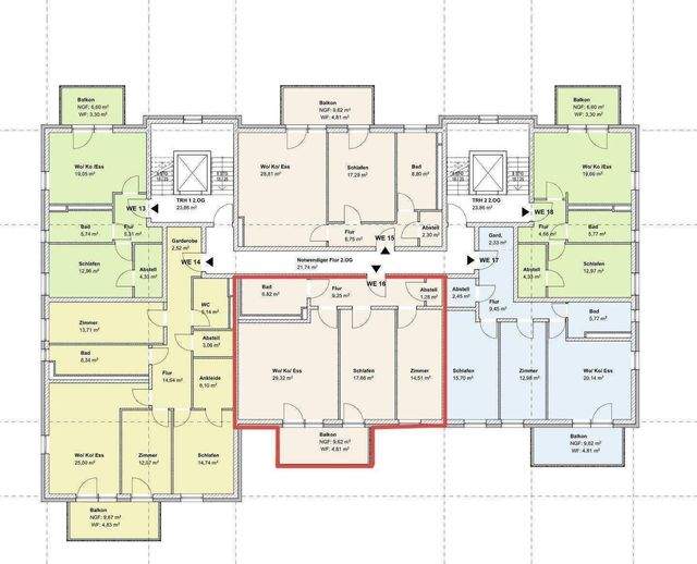 Die Eigentumswohnungen verteilen sich auf das Erdgeschoss, 1. - 3.Obergeschoss und das Dachgeschoss.