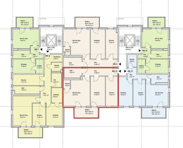 Das Mehrfamilienhaus mit Tiefgarage verfügt über 28 Wohneinheiten (2 - 4 Raumwohnungen) mit innovativen Grundrissen in verschiedenen Größen von ca. 44 m² bis 114 m².