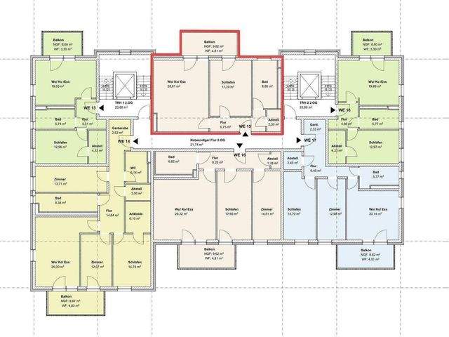 Das Mehrfamilienhaus mit Tiefgarage verfügt über 28 Wohneinheiten (2 - 4 Raumwohnungen) mit innovativen Grundrissen in verschiedenen Größen von ca. 44 m² bis 114 m².