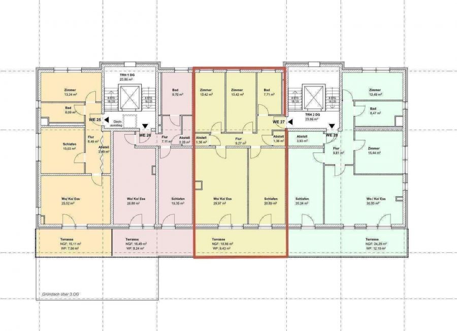 Die Eigentumswohnungen verteilen sich auf das Erdgeschoss, 1. – 3.Obergeschoss und das Dachgeschoss.