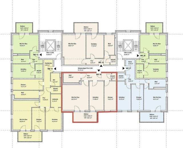 Das Mehrfamilienhaus mit Tiefgarage verfügt über 28 Wohneinheiten (2 - 4 Raumwohnungen) mit innovativen Grundrissen in verschiedenen Größen von ca. 44 m² bis 114 m².