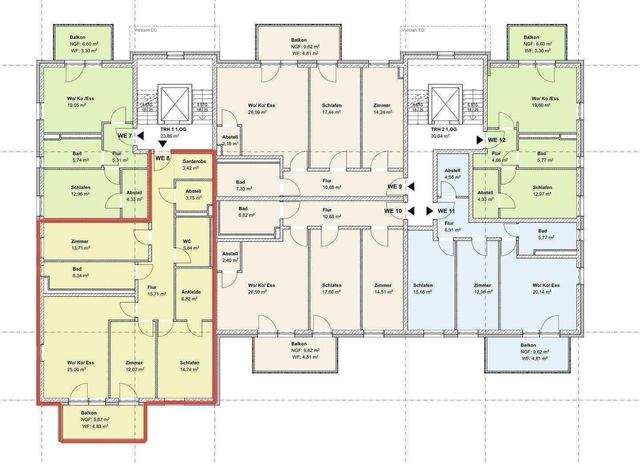 Die Eigentumswohnungen verteilen sich auf das Erdgeschoss, 1. - 3.Obergeschoss und das Dachgeschoss.