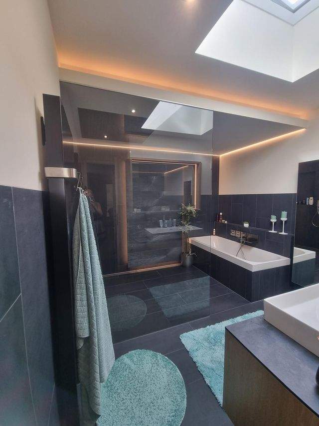 •Großzügiges, modernes Badezimmer mit Regendusche & Badewanne